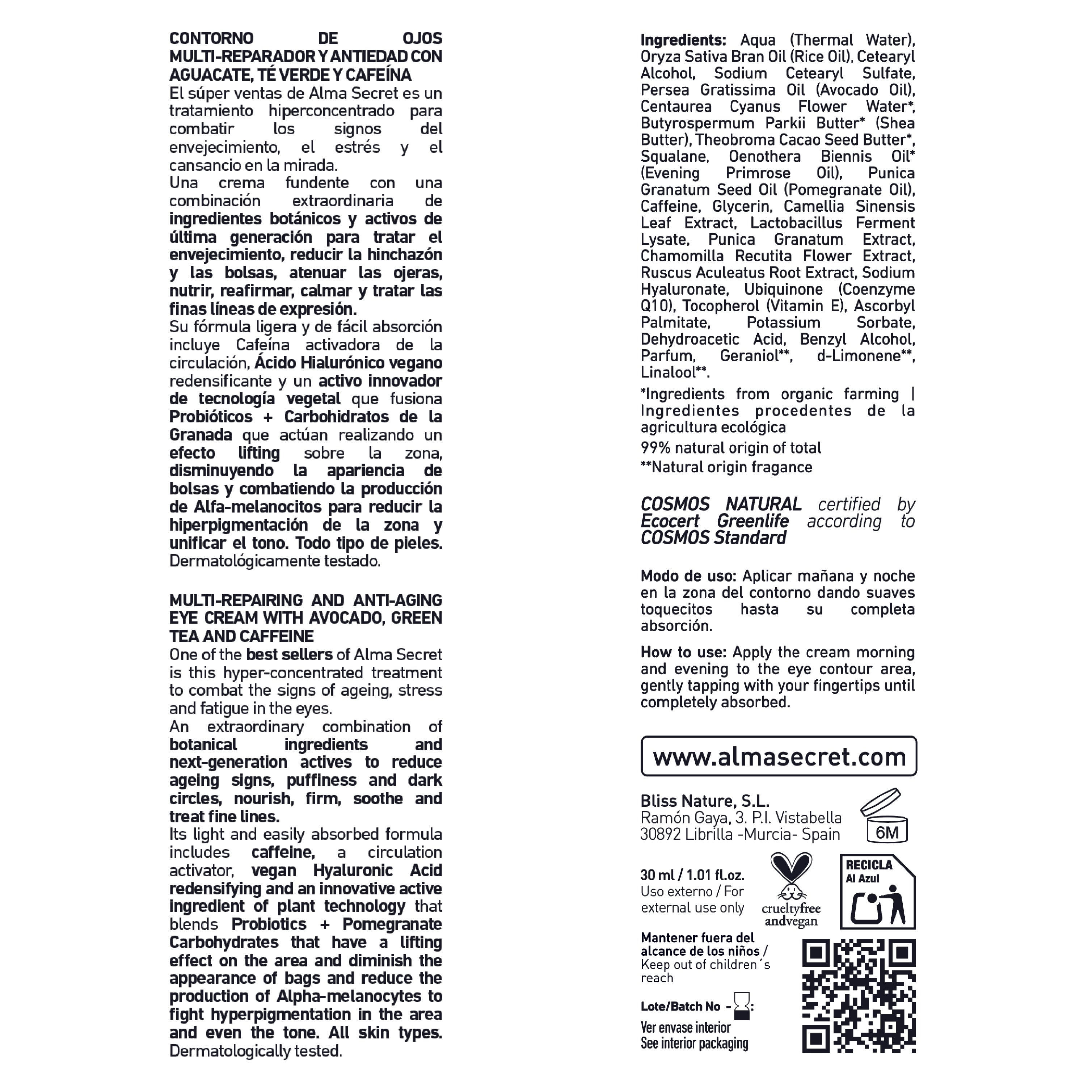 Die ALMA SECRET Anti-Aging-Augenkonturbehandlung wurde neu formuliert. Seine kraftvolle natürliche Formel entwickelt sich weiter und bekämpft die Zeichen der Hautalterung und müde Augen.