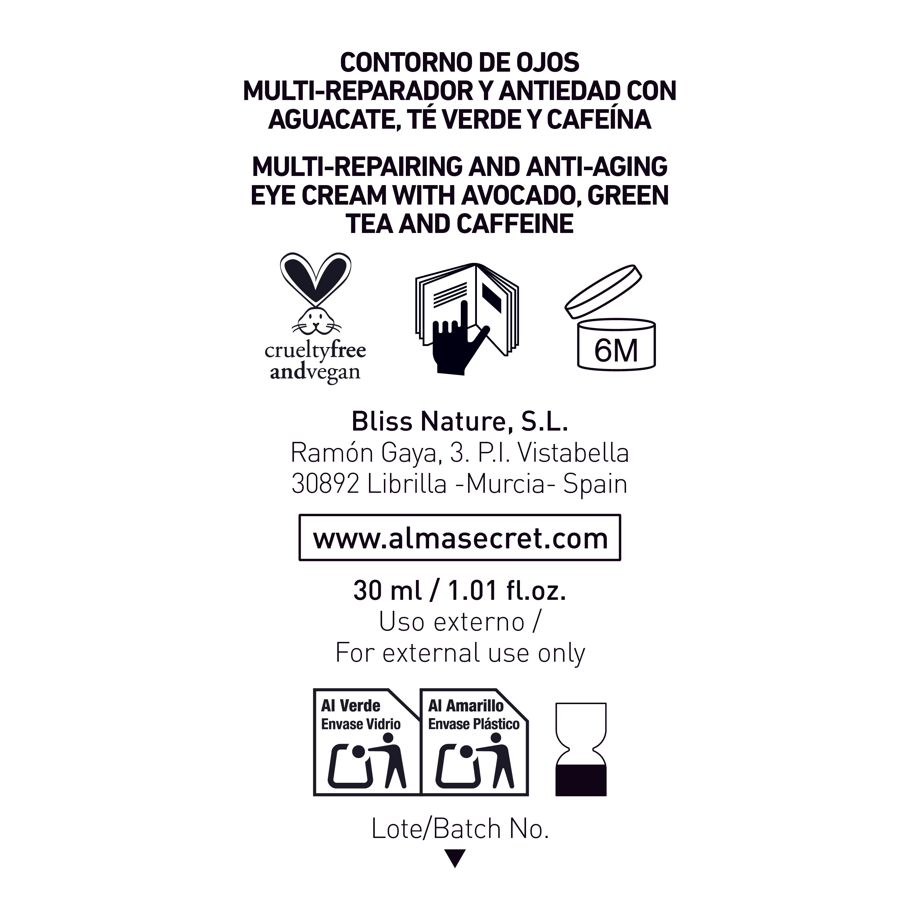 - Anti-Aging Augenkonturbehandlung - Avocado, grüner Tee & Koffein - 30 ml - Alma Secret