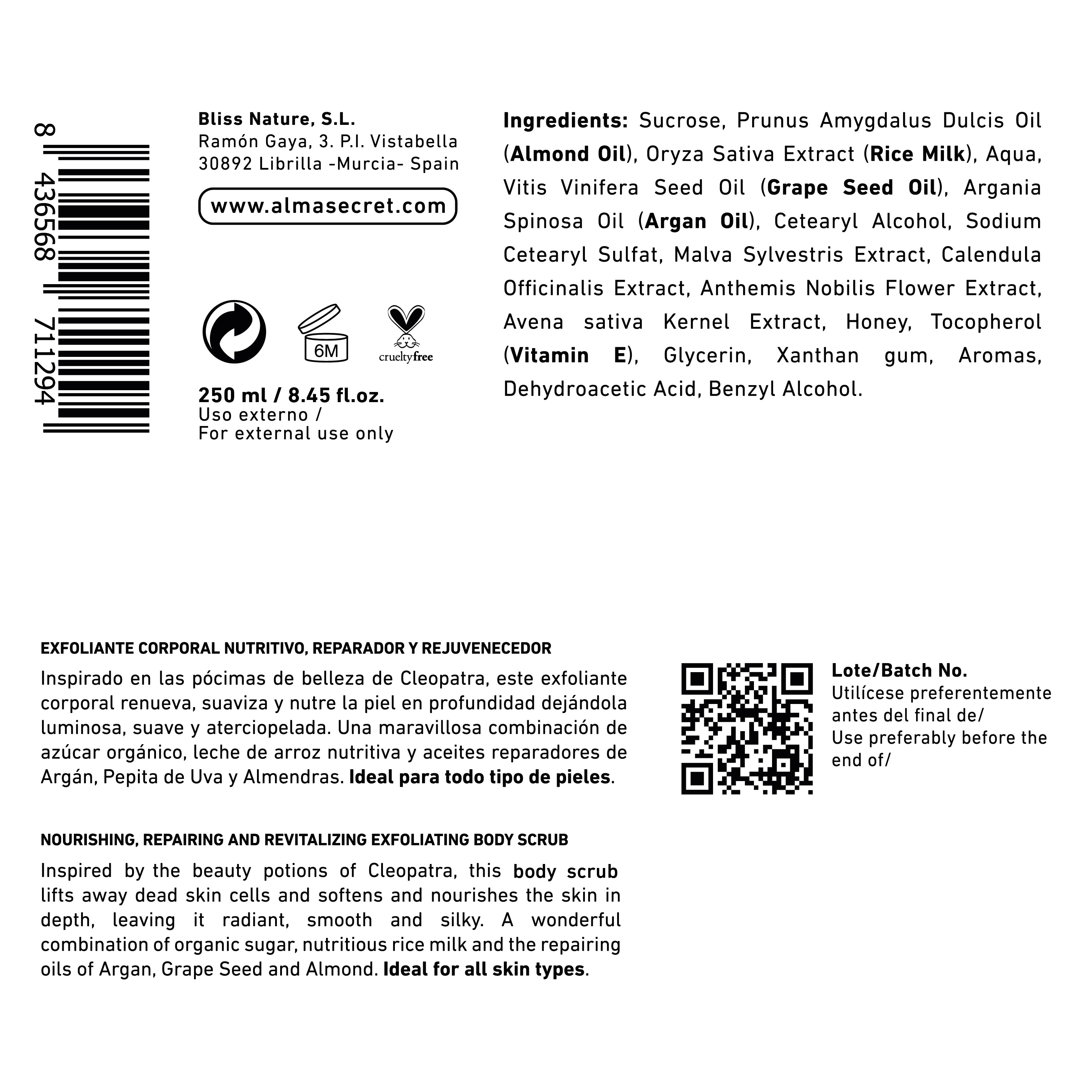 - Cleopatra Body Scrub - Reismilch, Sandelholz und Vanille - 250 ml - Alma Secret