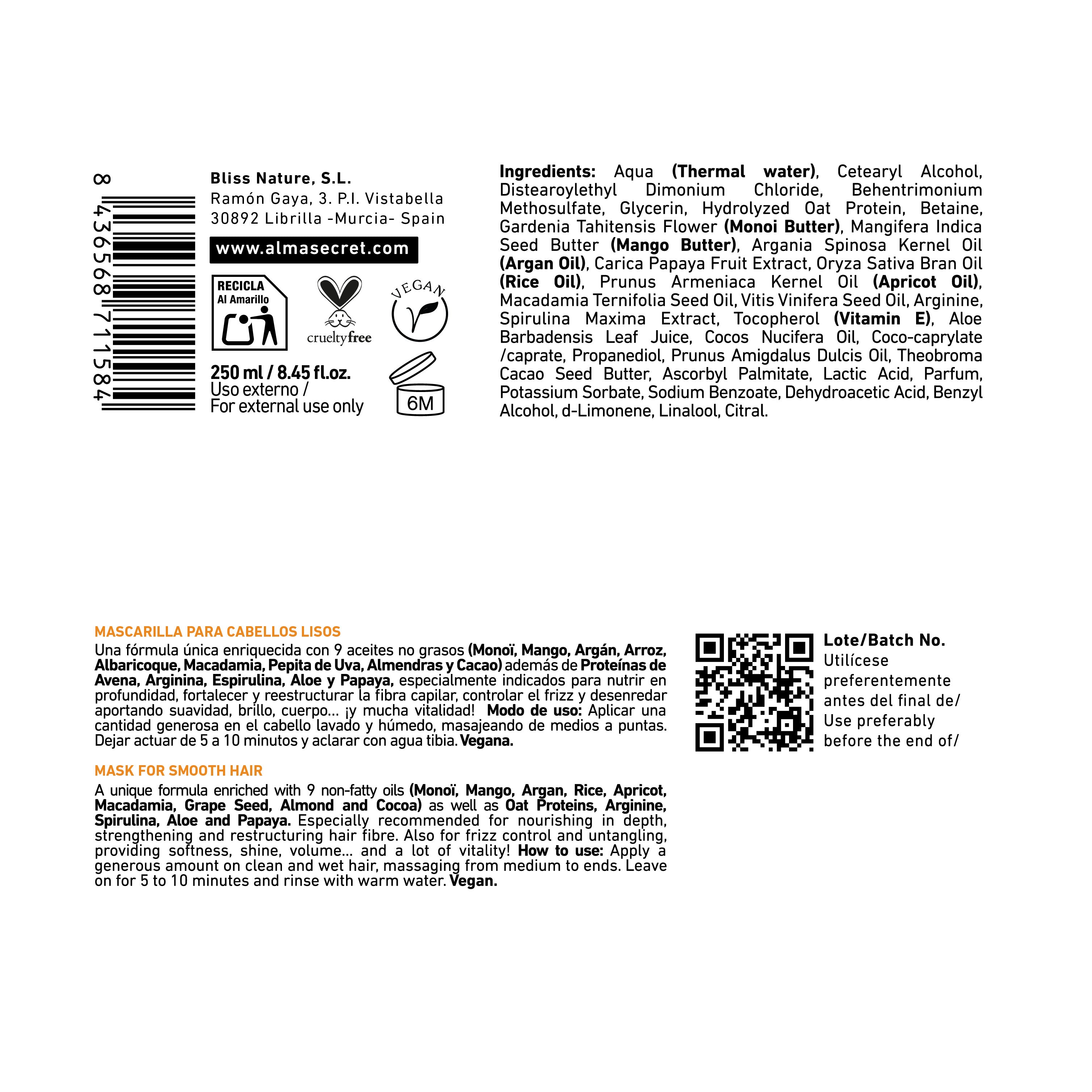 Mit dieser Maske, die speziell für glattes Haar geeignet ist, erleichtern Sie das Kämmen und hinterlassen Ihr Haar weich und seidig.