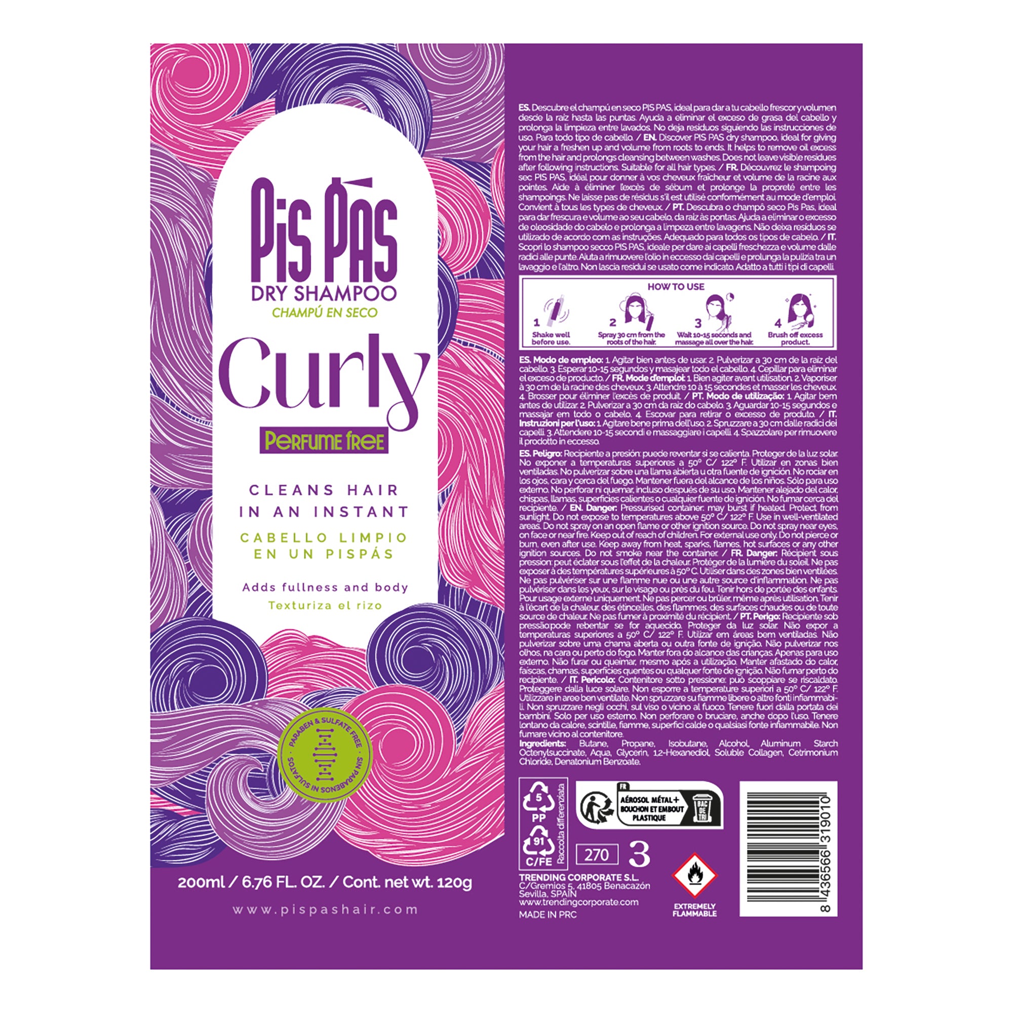 Trockenshampoo Curly ohne Duft, das das Haar erfrischt und reinigt und es Ihnen ermöglicht, länger mit sauberem Haar zu glänzen. Es ist speziell für lockiges Haar konzipiert und bietet eine sofortige Reinigung ohne sichtbare Rückstände. Die fortschrittliche Formel entfernt überschüssiges Öl und Gerüche, bringt Ihre Locken wieder zum Leben und verleiht ihnen ein frisches Aussehen. Es verleiht Ihren Locken erneutes Volumen und eine definierte Form, ohne sie zu beschweren oder Rückstände zu hinterlassen. Dieses Trockenshampoo hält Ihre Locken weich, definiert und frei von Frizz, um ihre natürliche Textur zu respektieren.