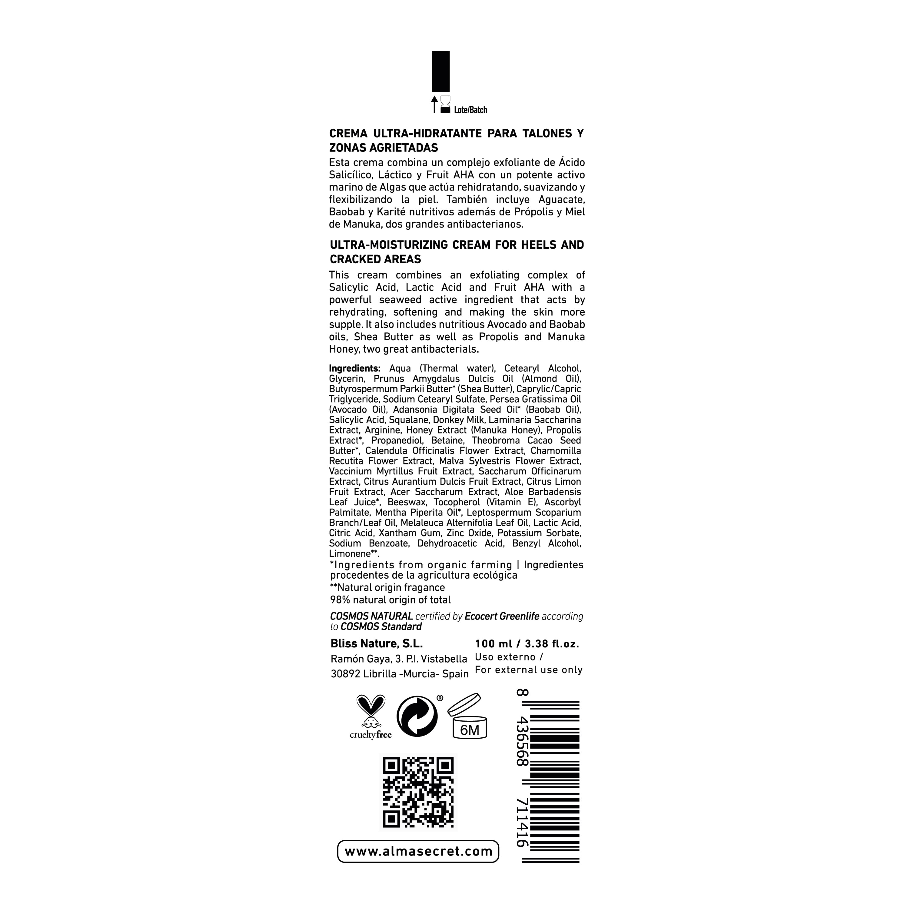 Ultra-Feuchtigkeitscreme für die Fersen – 8 % Urea, Allantoin & Avocado – 100 ml – Alma Secret